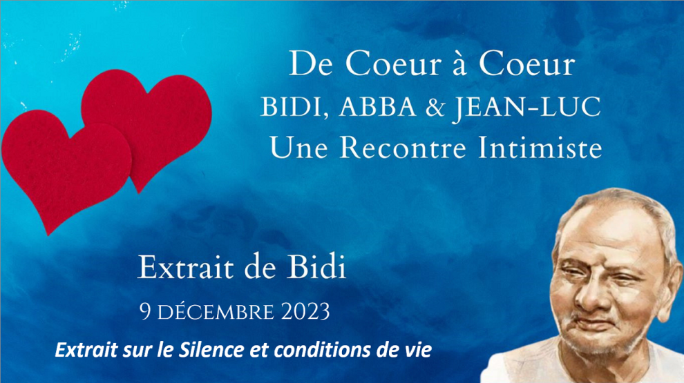 Mais simplement, je dirais un moment de Silence pour être l’observateur de ce Silence. Vous en trouverez un bien-être qui sera bien utile dans vos phases d’activités. Il vaut mieux d’ailleurs une dizaine de fois quelques minutes – quand je dis quelques minutes c’est deux minutes, trois minutes, cinq minutes maximum, qui se répètent une dizaine de fois dans la journée -, que de prendre une heure pour vous relaxer, méditer. Les effets seront beaucoup plus nets de cette façon dans votre progression, si je peux dire, vers ce qu’Abba a nommé l’État Naturel ou le Réel.